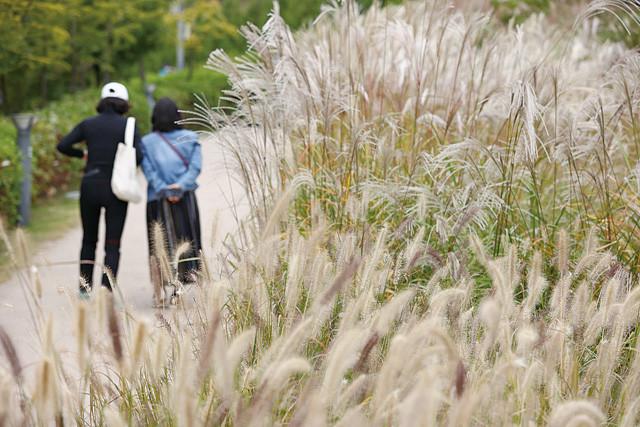 선선한 가을 날씨를 보이는 11일 서울 마포구 연남동 경의선숲길에서 시민들이 산책을 하고 있다.