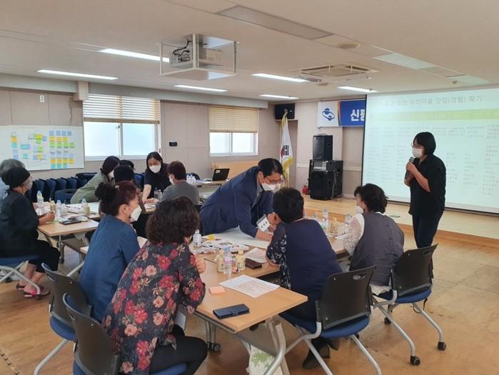 경북 구미시 신평1동은 5일 마을복지계획 추진단인 지역사회보장협의체 위원들이 참석한 가운데 주민이 주도하는 마을복지계획 수립을 위한 간담회를 열었다. 이날 간담회는 마을복지에 대한 이해, 주민이 느끼는 우리 마을 복지 관련 문제와 해결 가능한 의제를 설정하는 시간으로 구성됐다. 사진은 이날 간담회가 진행되고 있는 모습. (사진제공=구미시청)
