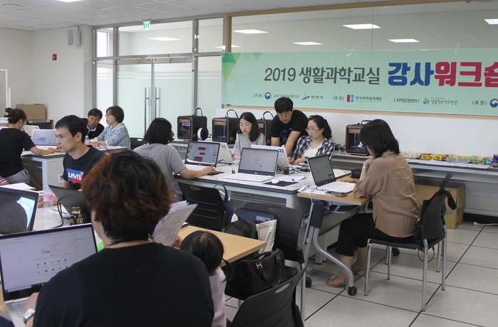 경기 안산시 (재)안산시청소년재단 상록청소년수련관은 최근 생활과학교실 강사를 대상으로 ‘메이커교육 역량 강화 워크숍’을 진행했다. 사진은 워크숍에 참여한 강사들이 교육에 집중하고 있는 모습. (사진제공=안산시청)