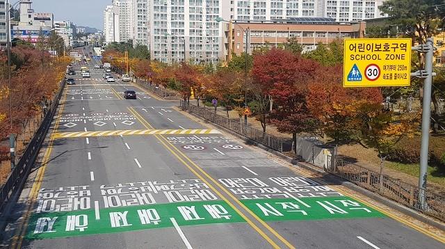 이 사업은 어린이보호구역시작·해제선을 운전자가 바로 인식을 할 수 있도록 초록색 바탕에 하얀색 글자로 시·종점 표지판과 정확히 일치하게 설치해 어린이 보호구역 해당 여부에 대한 오인 요소를 없애게 된다.