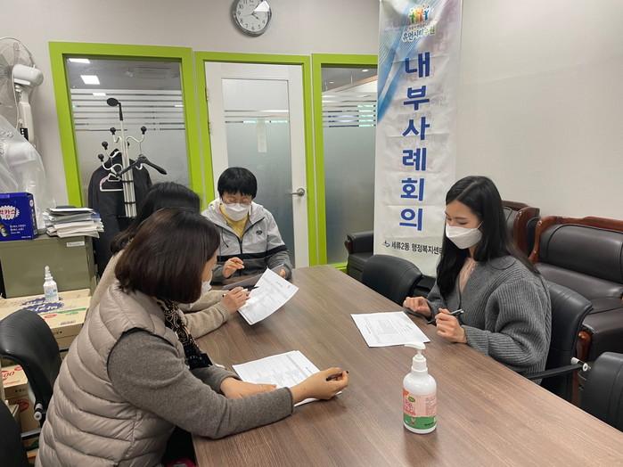 경기 수원시 권선구 세류2동행정복지센터가 최근 내부사례회의를 열고 생계유지에 심각한 어려움을 겪는 청장년 1인 가구 등 발굴 위기가정의 사례를 상정해 서비스 연계 등의 지원방안을 논의했다. 사진은 이날 회의가 진행되고 있는 모습. (사진제공=권선구청)