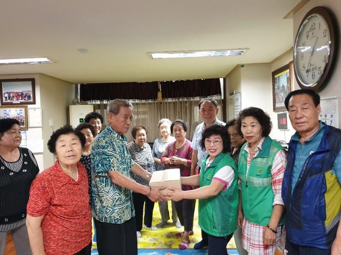 인천 동구 송림3·5동 새마을부녀회는 3일 추석을 맞이해 지역내 경로당 5곳을 방문해 ‘추석맞이 사랑의 떡 나눔’ 행사를 개최했다. 이날 회원들은 노인들에게 송편을 전달하며 명절 인사를 나눴다. 사진은 기념촬영을 하는 모습. (사진제공=동구청)