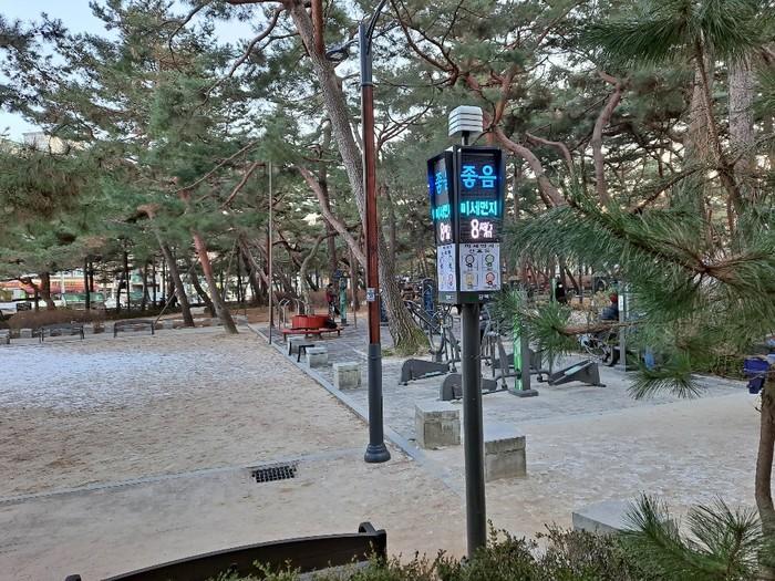 | ▲ 우이동 솔밭공원에 설치된 미세먼지 신호등. (사진제공=강북구청) |
