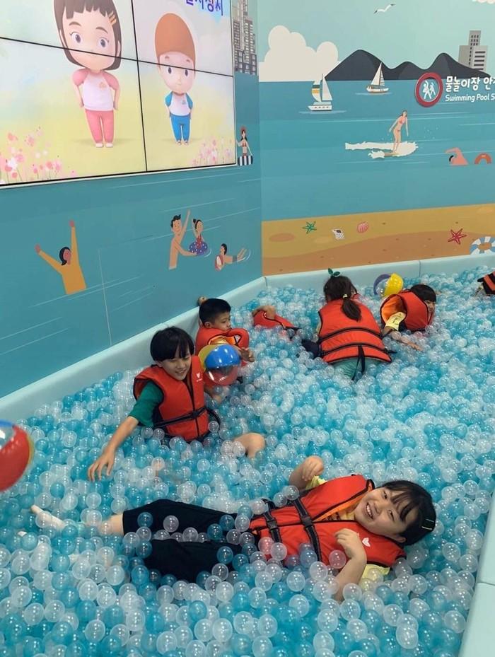학생들이 재난과 사고에 대한 대응방법을 체험하며 배울 수 있는 '학생안전체험관'을 개관했다고 충남교육청이 3일 밝혔다. 공주에 있는 충남교육청안전수련원에 들어선 학생안전체험관은 지하 1층~지상 3층, 연면적 4905㎡ 규모로, 생활안전과 교통안전·재난안전·생명존중 등 4개 체험관·18개 체험실로 구성됐다. 사진은 생존수영을 체험하는 학생들.
