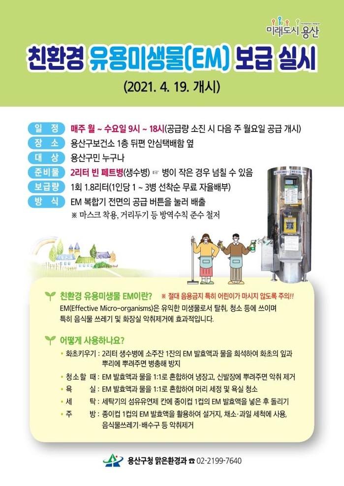 | ▲ 친환경 유용미생물 보급 안내문. (사진제공=용산구청) |