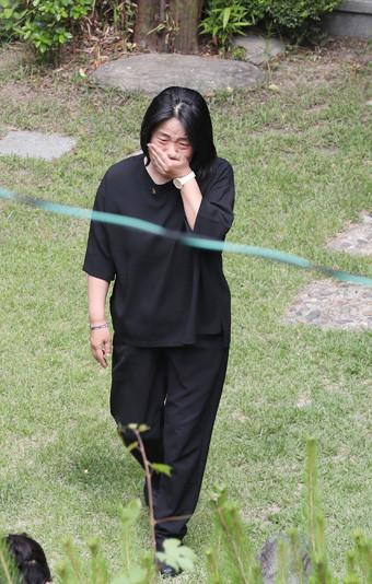 더불어민주당 윤미향 의원이 7일 오전 서울 마포구 연남동 '평화의 우리집'에서 관계자들을 맞이하고 있다. 정의기억연대(정의연)의 기부금 사용 의혹 등을 수사하고 있는 검찰이 최근 일본군 ‘위안부’ 피해자 할머니 쉼터인 ‘평화의 우리집’에 대해 압수수색을 진행한 가운데 이곳 소장 A(60) 씨가 자신의 집에서 숨진 채 발견됐다.