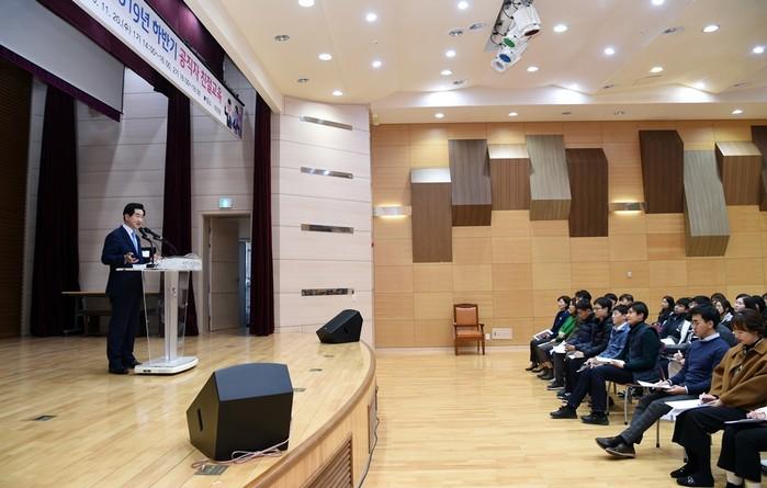 경기 의정부시는 최근 300여명의 공직자를 대상으로 한 ‘2019년 하반기 공직자 친절교육’을 실시했다. 이번 교육은 2개 기수로 나눠서 민원 응대의 역량을 높이기 위해 SCS아카데미 심은진 강사를 초빙해 ‘신뢰를 주는 이미지 메이킹’을 주제로 진행했다. 사진은 교육에 참여한 안병용 시장이 인사말을 하고 있는 모습. (사진제공=의정부시청)