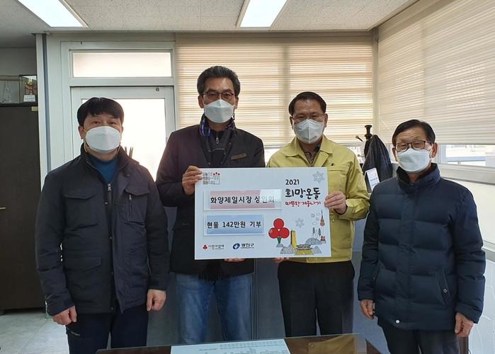 최근 광진구 화양제일시장 상인회가 지역내 어려운 이웃을 위해 반찬, 과일, 떡 등 140만원 상당의 성품을 전달했다. 이번 기부는 화양제일시장 내 13개 점포가 참여했다.사진은 기부 후 기념촬영을 하고 있는 관계자들의 모습. (사진제공=광진구청)
