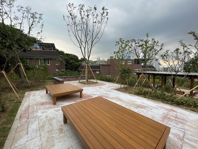 지난 2월 소화천사의집과 협약을 체결해 1500㎡의 유휴부지에 배롱나무 등 교목 12종 72주와 조팝나무 등 관목 12종 2480주, 꽃무릇 등 초화류 3종 2640본을 식재하고, 경사면을 따라 목재계단과 황토콘크리트 포장 산책로, 파고라 2곳 등 쉼터를 조성했다.