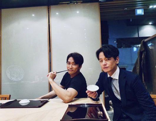 사진에서 송승헌은 ‘위대한 쇼’에서 함께 호흡을 맞추고 있는 임주환과 나란히 식탁에 앉아 있다. 식사를 기다리는 중 찍은 걸로 보이는데 두 사람의 우열을 가릴 수 없는 멋이 뿜어져 나온다.