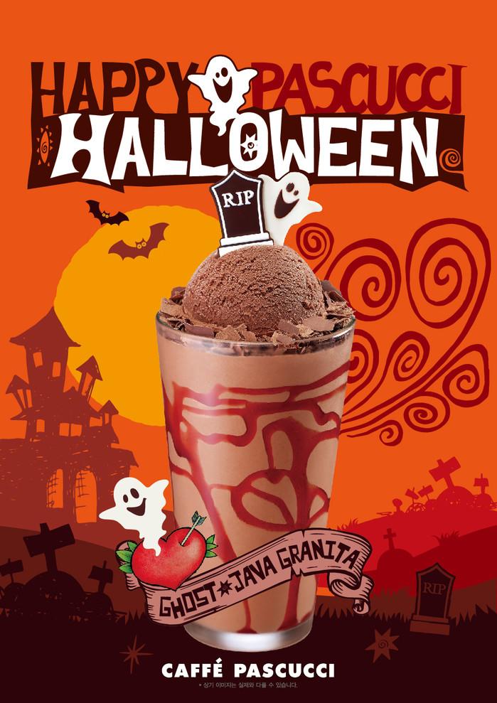 ‘HAPPY PASCUCCI HALLOWEEN’(파스쿠찌와 함께하는 해피 핼러윈!)을 테마로 출시한 이번 신제품은 자바칩의 진한 풍미, 민트의 알싸한 맛, 라즈베리 소스의 새콤달콤 한 맛, 초콜릿 젤라또의 쫀득함이 어우러진 ‘고스트 자바 그라니따(R/6800원)’ 다.