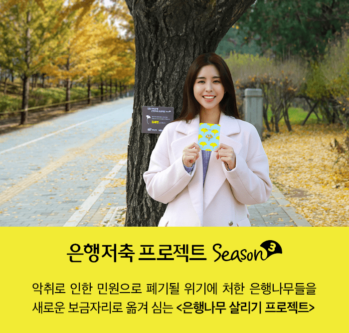 <은행저축프로젝트>는 ‘은행(銀行)이 은행(銀杏)을 살린다’는 독특한 발상에서 시작된 사회공헌 캠페인으로 가을이면 열매 악취로 인해 베어질 암은행나무를 다른 곳으로 옮겨 심어 은행나무를 살리고 저축해 나가는 사회공헌 활동이다.