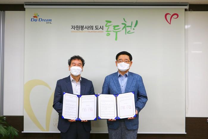 경기 동두천시자원봉사센터가 최근 동두천시노인복지관과 '노인일자리 및 노인복지 증진과 자원봉사 활성화'를 위한 협약을 체결했다. 사진은 협약 체결 후 양 기관 관계자들이 기념촬영을 하는 모습. (사진제공=동두천시청)