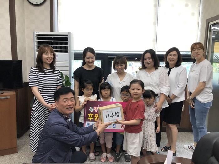 경기 수원시 권선구 권선2동에 위치한 '동화어린이집'은 최근 동 행정복지센터를 방문해 어린이집에서 개최한 ‘아나바다 장터’를 통해 모금한 수익금 전액을 어려운 이웃을 위해 기부했다. 사진은 어린이집 관계자 및 어린이들이 기념촬영을 하는 모습. (사진제공=권선구청)
