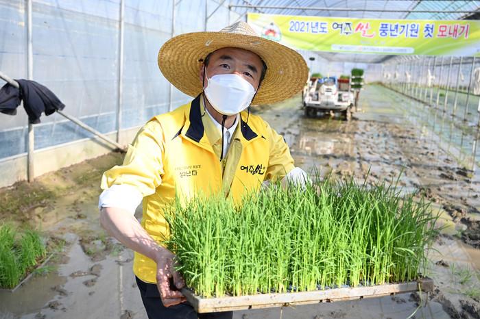 여주시농협조합공동사업법인 주관으로 진행된 올해 첫 모내기 행사는 코로나19 방역수칙 준수 아래 이항진 시장, 박시선 여주시의회 의장, 이병길 여주농협조합장, 박일영 여주시농협조합공동사업법인 대표 등이 참여했다.
