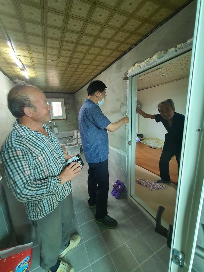 충남 홍성군 금마면지역사회보장협의체가 지난 25일 지역내 거동이 불편한 노인부부의 가정에 주건환경 개선의 일환으로 화장실 설치공사를 완료했다. 사진은 협의체 관계자가 공사가 완료된 화장실을 살펴보고 있는 모습. (사진제공=홍성군청)