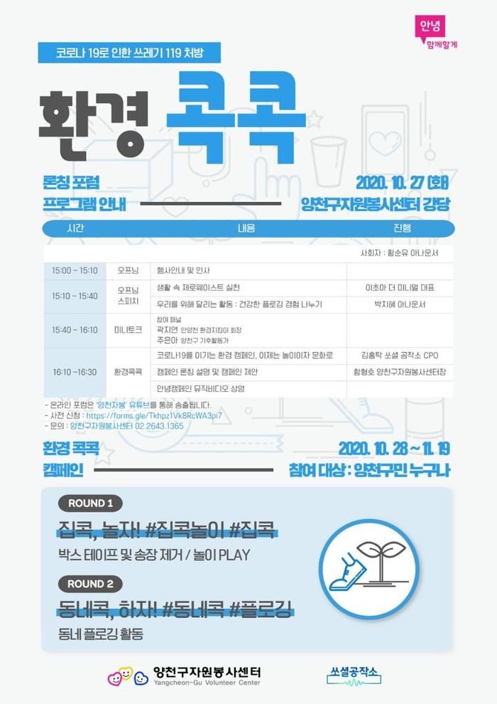 [시민일보 = 이대우 기자] 서울 양천구(구청장 김수영)가 27일 ‘환경 콕콕’ 캠페인의 론칭 포럼을 개최한다.