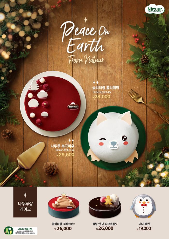 한편, 나뚜루는 매장에서도 크리스마스 시즌 케이크 3종을 선보였다. 크리스마스 트리를 형상화한 ‘글리터링 크리스마스’와 다크 초콜릿으로 코팅한 ‘폴링 인 더 다크 초콜릿’, 귀여운 캐릭터 모양의 ‘미니 펭귄’이다.