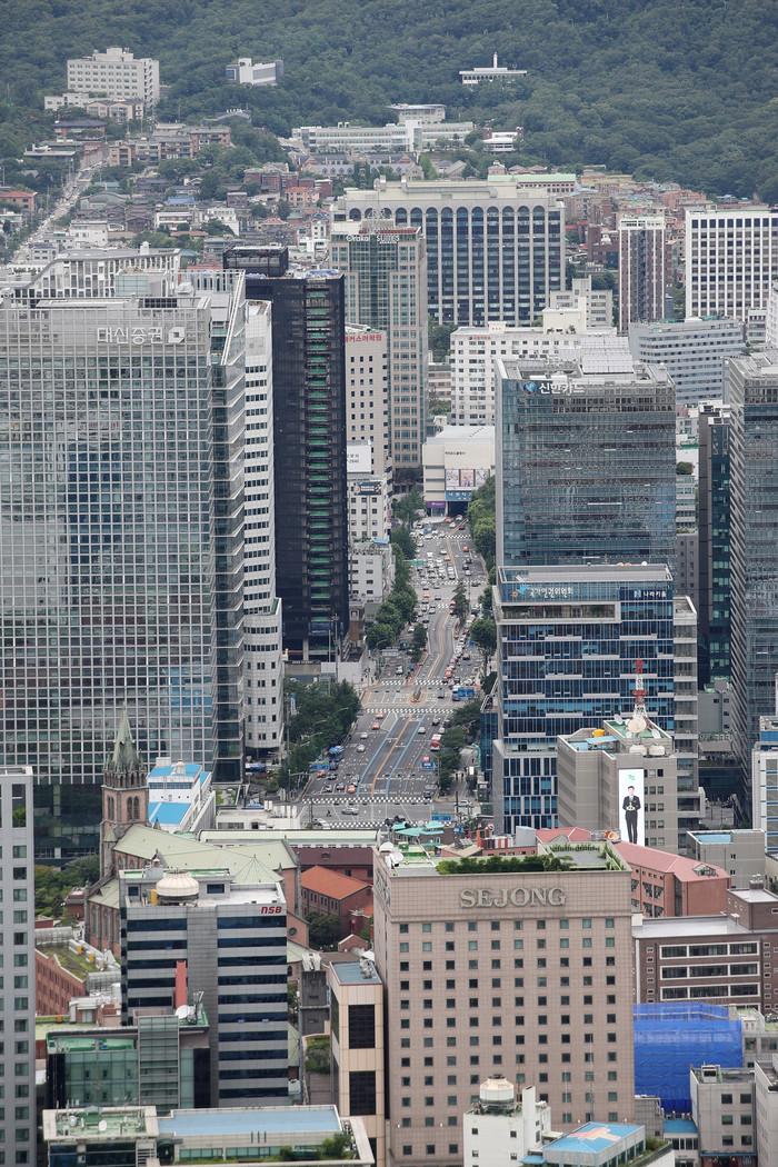 비가 그친 14일 오전 용산구 남산에서 바라본 서울 시내가 선명하게 보인다.