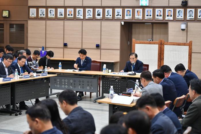경기 포천시가 28일 시청 대회의실에서 '2020년 주요 업무 보고회'를 개최했다. 박윤국 시장 주최로 열린 이날 보고회에서는 올해 주요사업 추진 성과를 평가분석하고, 2020년 부서별 주요 업무를 보고했다. 사진은 회의 진행 모습. (사진제공=포천시청)