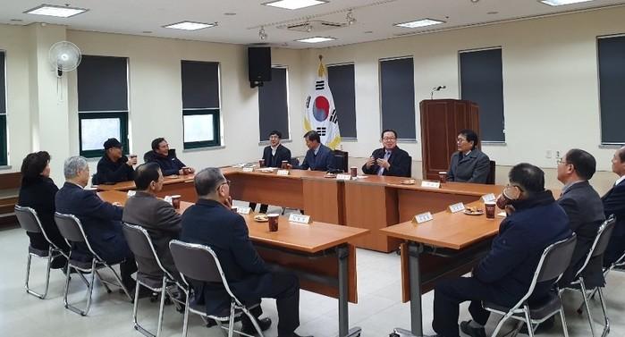 조광한 경기 남양주시장이 최근 2020년 새해를 맞아 남양주시보훈회관에서 보훈단체협의회 9개 단체 대표들과 간담회를 갖고, 단체 건의사항과 국가유공자들의 복지 및 보훈에 관한 의견 청취와 향후 발전방향을 토의했다. 사진은 회의 모습.