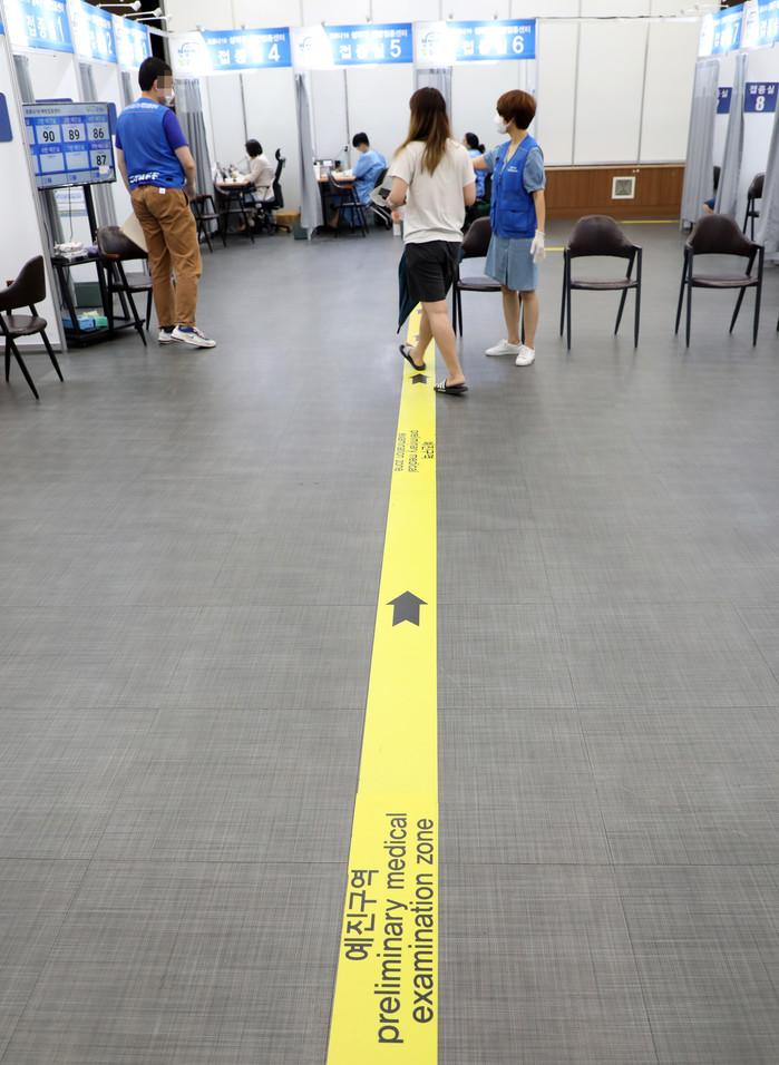 18일 오전 성북구 예방접종센터 모습. 코로나19 예방접종대응추진단에 따르면 2차 접종까지 모두 마친 사람은 총 1049만1866명으로 인구 대비 20.4%이다. 1차 접종자는 2378만511명으로 인구 대비 46.3%이다.