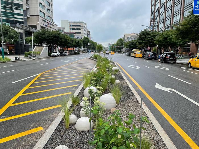 뿐만 아니라 관목 위주의 단조로운 녹지대에서 벗어나 라임라이트, 핑크에나벨 같은 개성 있는 수목류를 자연형 식재로 도입해 새로운 형태의 가로녹지대를 선보였다.