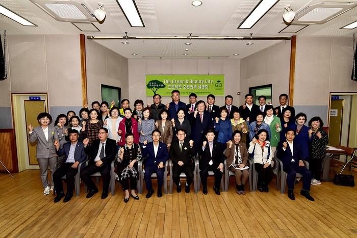경기 의정부시 호원2동 행정복지센터는 지난 25일 호원2동행정복지센터 대회의실에서 ‘The G&B CITY 프로젝트’ 호원권역 사업설명회를 개최했다. 사진은 설명회에 참석한 관계자들이 기념촬영을 하는 모습. (사진제공=의정부시청)