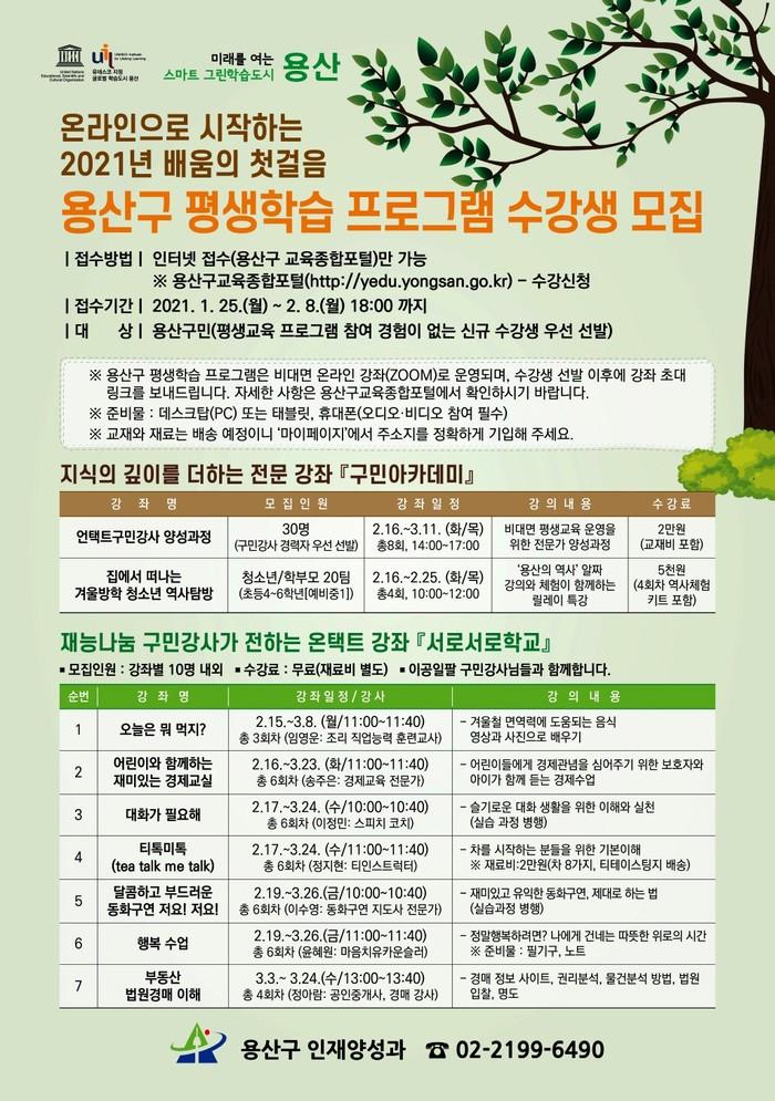 | ▲ 평생교육프로그램 홍보 포스터. (사진제공=용산구청) |