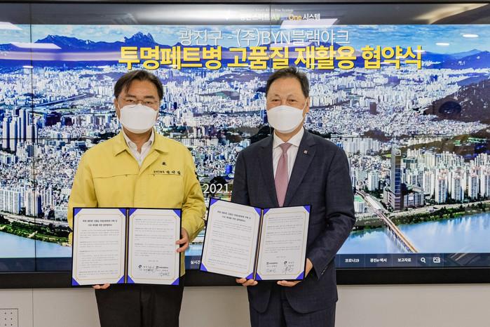 [시민일보 = 여영준 기자] 서울 광진구(구청장 김선갑)는 최근 ㈜비와이엔블랙야크와 투명 페트병 재활용 활성화를 위한 협약식을 개최했다고 14일 밝혔다.