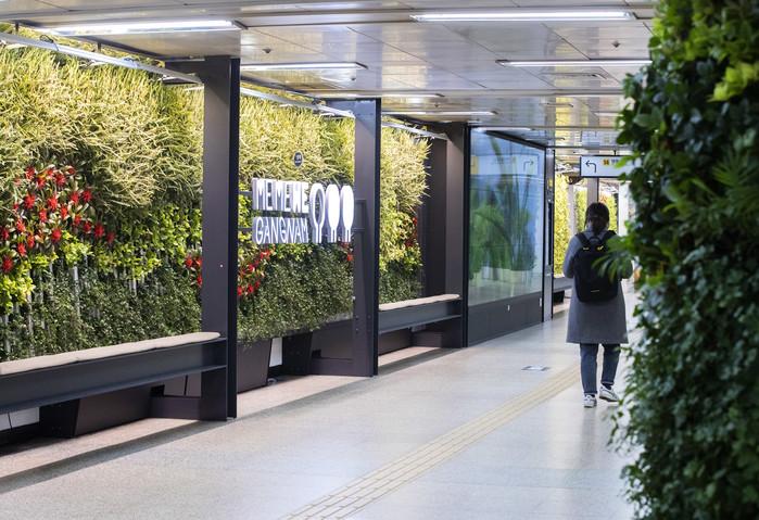 [시민일보 = 이대우 기자] 서울 강남구(구청장 정순균)가 지하철 7호선 청담역 지하 길이 650m ‘미세먼지 프리존’ 전 보행구간을 아이비·산호수 등 공기정화식물로 봄맞이 새 단장했다고 24일 밝혔다.