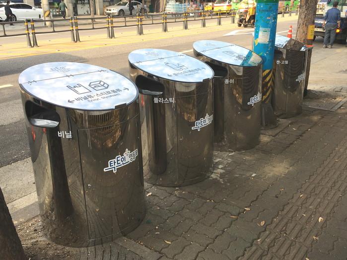 또한 기존의 분리수거함의 직사각형 플라스틱에서 벗어나 오염에 강하고 세척이 용이한 반짝이는 스테인리스 재질을 이용해 원통 형태로 자체 제작했다.