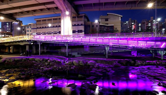 | ▲ ‘홍제천 물빛로드’에 설치된 경관 조명. (사진제공=서대문구청) |