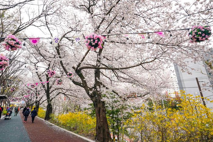 봄꽃축제가 열리던 장안벚꽃길은 군자교~연육교 3.4km, 중랑천변을 따라 벚꽃과 산수유, 개나리, 황매화, 철쭉 등이 활짝 피는 곳으로, 봄의 기운을 물씬 느낄 수 있는 동대문구의 대표적인 봄꽃 명소이다.