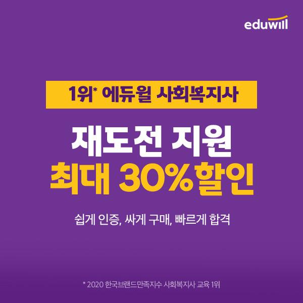 [시민일보 = 여영준 기자] 종합교육기업 에듀윌(대표 박명규) 사회복지사1급은 시험에 불합격한 수험생을 위해 다시도전 이벤트를 마련했다고 밝혔다.