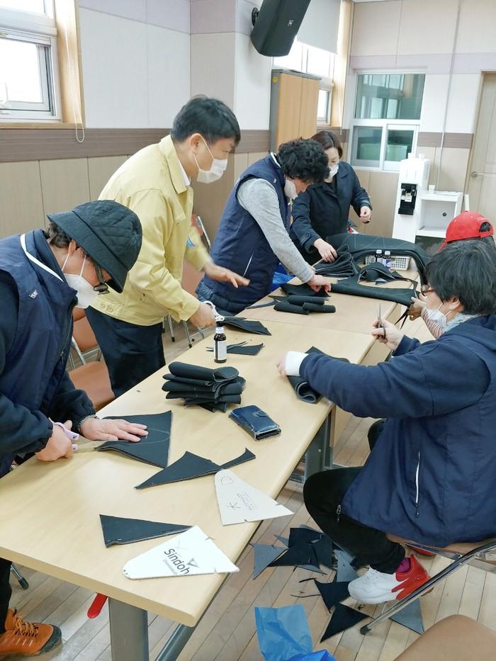 경기 여주시 금사면 주민자치위원회가 코로나19 지역확산 차단을 위해 17일부터 이포권역행복센터에서 수제마스크 자체 제작에 나섰다. 제작된 마스크는 우선 지역내 홀몸노인 등 취약계층에 전달된다. 사진은 마스크를 만들고 있는 위원들의 모습. (사진제공=여주시청)