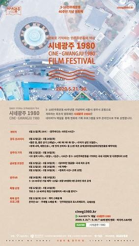 서울시와 광주광역시 공동 주최로 열리는 이번 영화제는 코로나19 예방과 생활 속 거리두기 실천을 위해 네이버TV ‘시네광주1980’채널을 통해 진행된다.