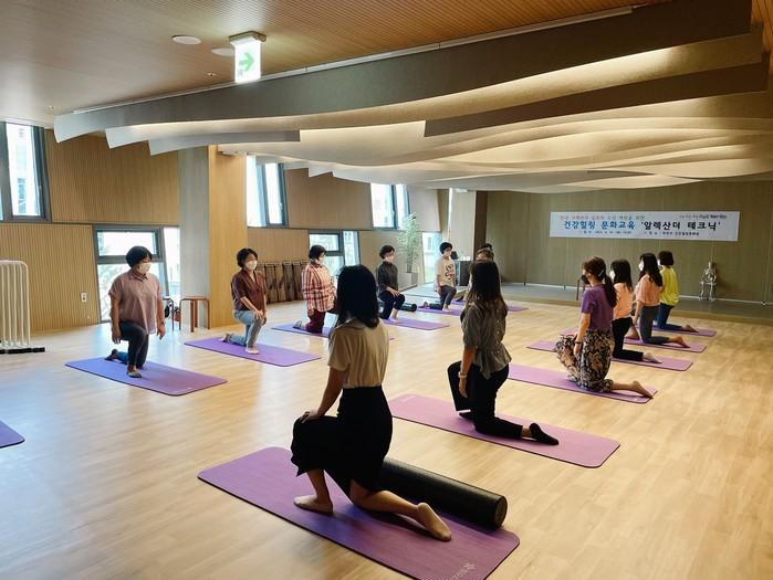 | ▲ 최근 양천구 사회복지 실무자들이 건강힐링문화관에서 ‘알렉산더 테크닉’ 힐링 문화교육에 참여해 교육을 받고 있다. (사진제공=양천구청) |