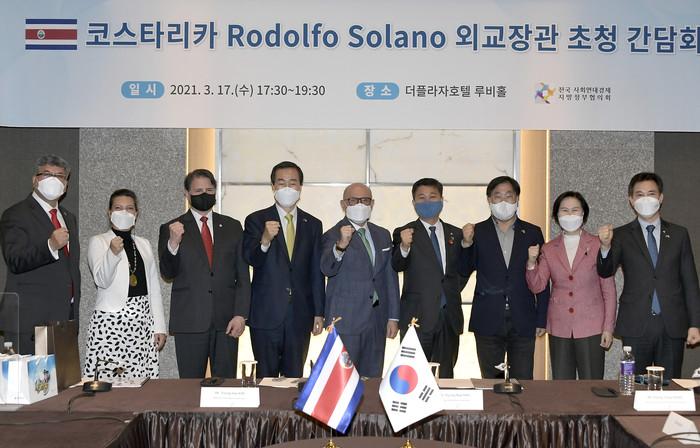 전국 사회연대경제 지방정부협의회 회장인 문석진 서울 서대문구청장이 지난 17일 ‘코스타리카 정부 관계자 초청 간담회’에 참석해 양국 간 사회적경제 상생 발전을 위한 협력 의지를 피력했다. 사진은 문 구청장(왼쪽 네 번째)과 간담회 참석자들이 파이팅을 외치며 기념촬영을 하는 모습. (사진제공=서대문구청)