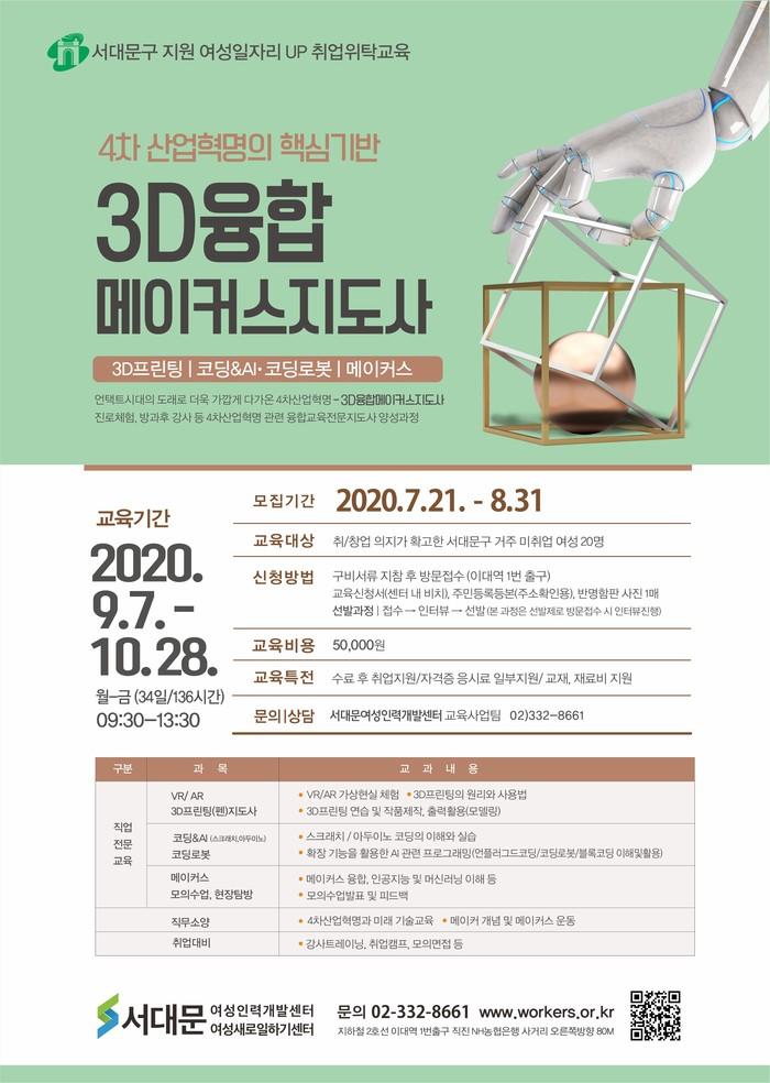▲ 여성 3D융합메이커스 지도사 양성 과정 교육생 모집 안내문. (사진제공=서대문구청) |