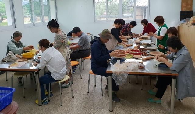 | 영암도기박물관 기초생활도예교실에서 도예수업을 받고 있는 영암군민들=사진, 영암도기박물관 제공 |