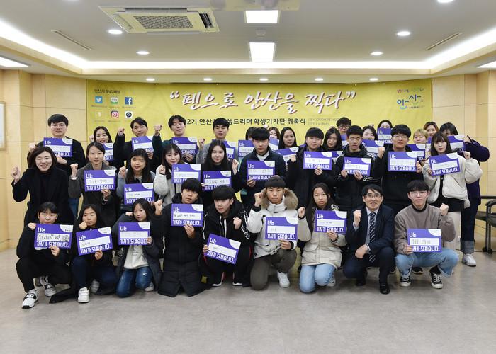 14일 경기 안산시청에서 열린 ‘제2기 안산시 생생드리머 학생기자단’ 위촉식에 공개모집으로 선정된 학생기자단 51명(중학생 13명·고등학생 5명·대학생 33명)이 참석해 위촉장과 기자증을 수여받았다. 사진은 학생들이 기념촬영을 하는 모습. (사진제공=안산시청)