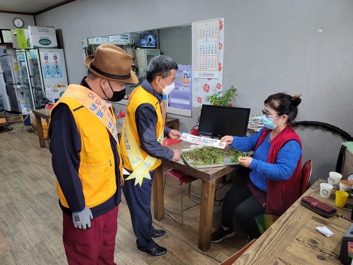 경기 포천시 가산면 청소년지도협의회는 최근 민·관 합동으로 가산면 소재 학교 주변 및 청소년 유해업소 밀집지역을 대상으로 청소년 유해환경 지도 점검 활동을 펼쳤다. 사진은 음식점을 방문해 청소년 보호법 위반행위에 대한 신고안내문과 홍보물을 배부하고 있는 모습. (사진제공=포천시청)