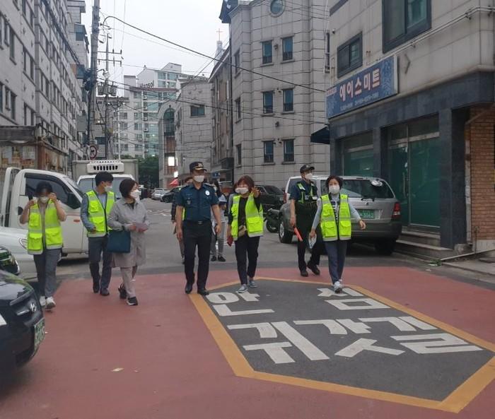 경기 수원시 권선구 곡선동 행정복지센터는 최근 여성친화도시 시민참여단, 곡선지구대와 함께 안룡초등학교 일원에서 현장 모니터링을 실시했다. 현장 모니터링단은 안룡초등학교 정문에서 곡반정동 차고지 뒤편까지 현장 점검을 통해 보안등과 로고젝터 등의 안전관련 인프라 설치 구역을 파악했다. 사진은 관계자들이 현장을 살펴보는 모습. (사진제공=권선구청)