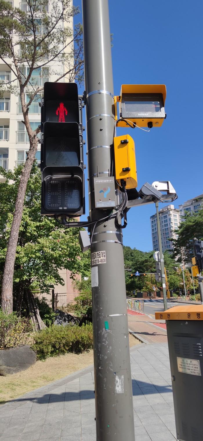 ‘보행신호 음성안내 보조장치’는 횡단보도 대기공간에서 적색신호시 보행자가 차도에 진입하면 음성으로 “위험하오니 인도로 이동해 주십시오”라고 경고 안내방송을 해주고, 녹색신호시에는 “좌우를 살핀 후, 건너가십시오”라고 안내하며, 녹색 점멸 신호시에는 “다음 신호에 건너세요”라고 안내하는 등 횡단보도 보행대기선에서 스마트폰 등 다른 곳에 집중하고 있을 때 지능형 폐쇄회로(CC)TV를 통해 경고 및 보행안내를 음성으로 알려주는 신호등 보조 시스템이다.