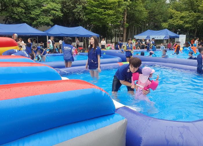 대학생 봉사 단체 'bhc치킨 해바라기 봉사단' 3기 2조 단원들은 지난 24일 서울시 동작구 대방동에 위치한 여름철 물놀이를 위해 개장한 워터파크를 찾았다.