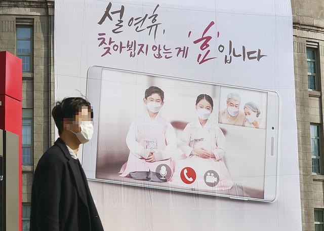 지난 31일 서울도서관 외벽에 신종 코로나바이러스 감염증(코로나19) 확산 방지를 위한 설 연휴 거리두기 대형 현수막이 설치돼 있다.