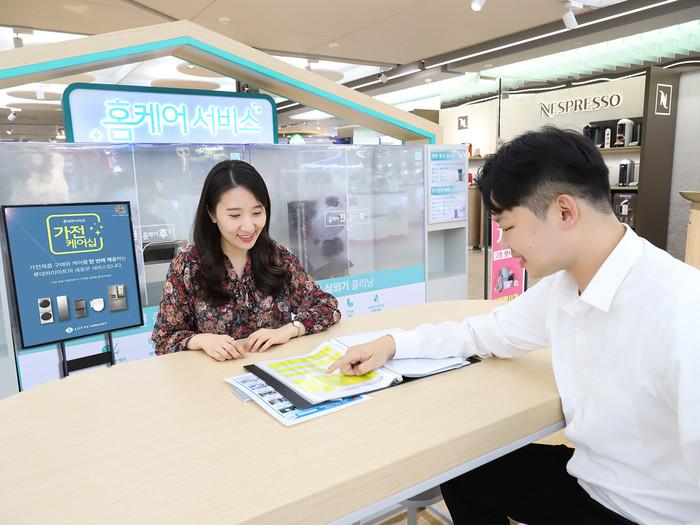 ▲ 롯데하이마트 메가스토어 잠실점을 방문한 고객이 ‘가전 케어십’을 상담 받고 있다. (사진제공=롯데하이마트) |