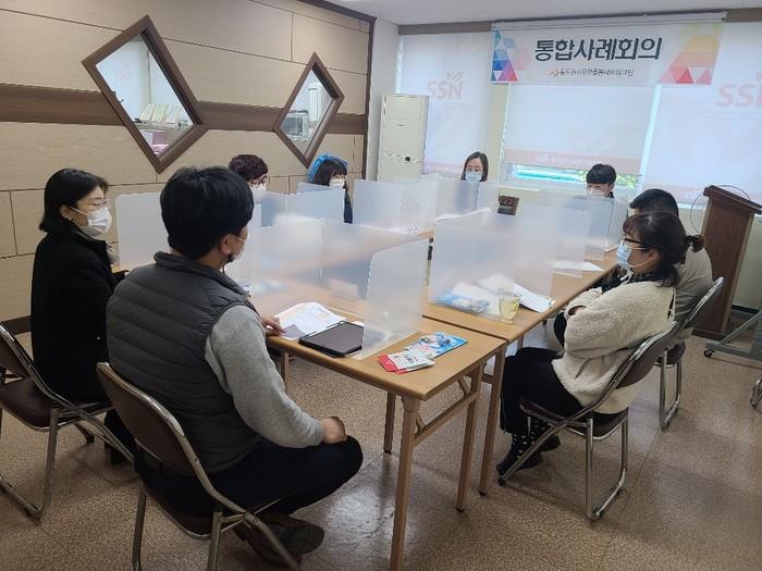 경기 동두천시 무한돌봄네트워크팀은 지난 27일 위기가구의 문제 해결을 위해 해당 업무 담당자들이 모여 집중 사례관리 진행가구의 어려움을 공유하는 제9차 통합사례회의를 개최했다. 사진은 이날 회의가 진행되고 있는 모습. (사진제공=동두천시청)