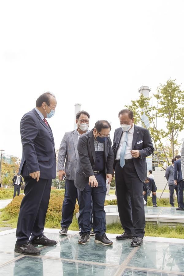유동균 마포구청장이 지난 6일 서울시의회 도시계획관리위원회 의원들과 서울복합화력발전소에 들어설 주민편익시설을 점검했다. 주민편익시설은 대지 4119㎡·연면적 5009㎡ 규모로, 수영장을 비롯해 헬스장, 종합체육관 등이 들어선다. 사진은 이날 유동균 구청장(오른쪽)이 의원들과 현장을 둘러보고 있는 모습. (사진제공=마포구청)